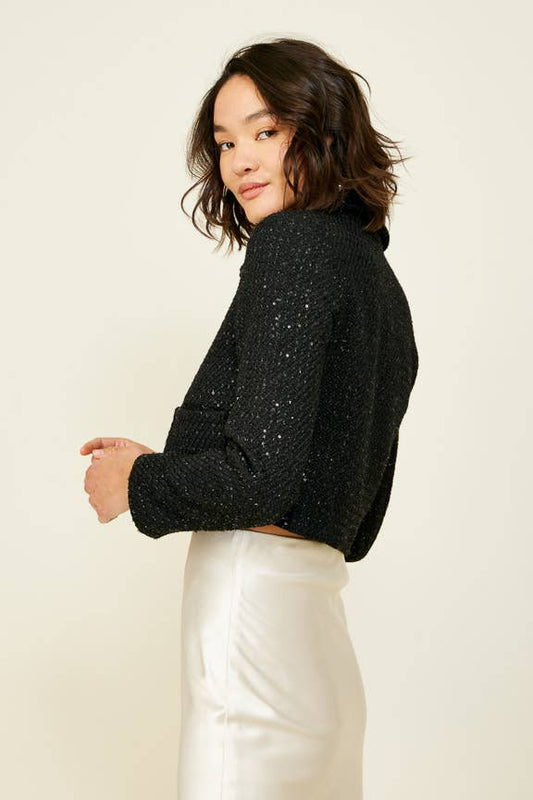 LAYERED GLITTER BALL GOWN: 6 / Black