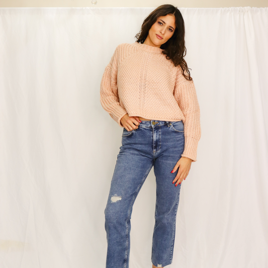 Ladies Batwing Sleeves V-Neck Knit Dress