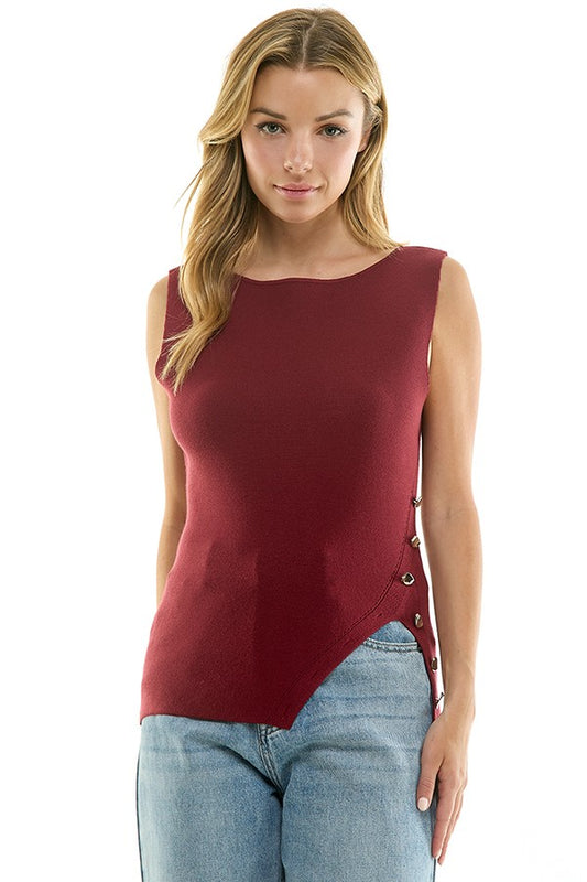 Side Slit Sweater Tank in Burgundy