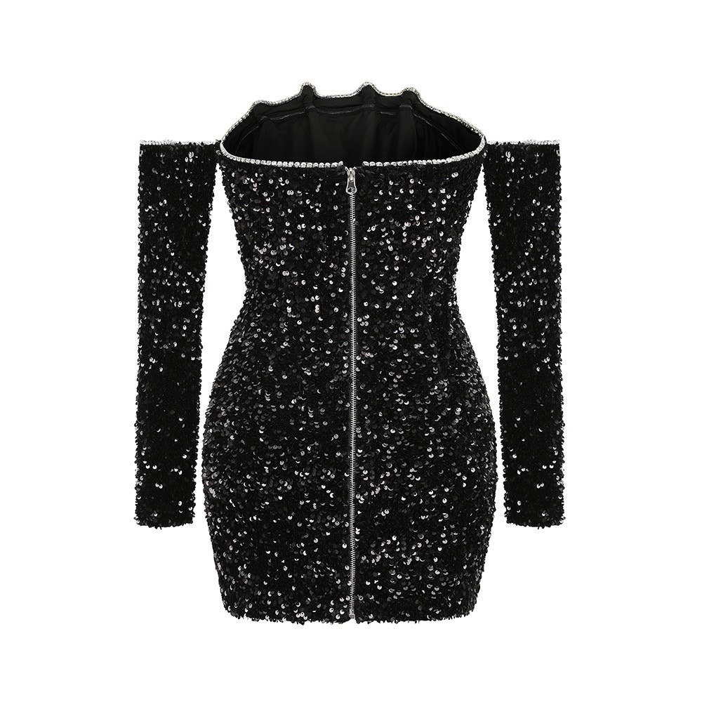 Sparkling Sequin One-Shoulder Long Sleeve Party Dress