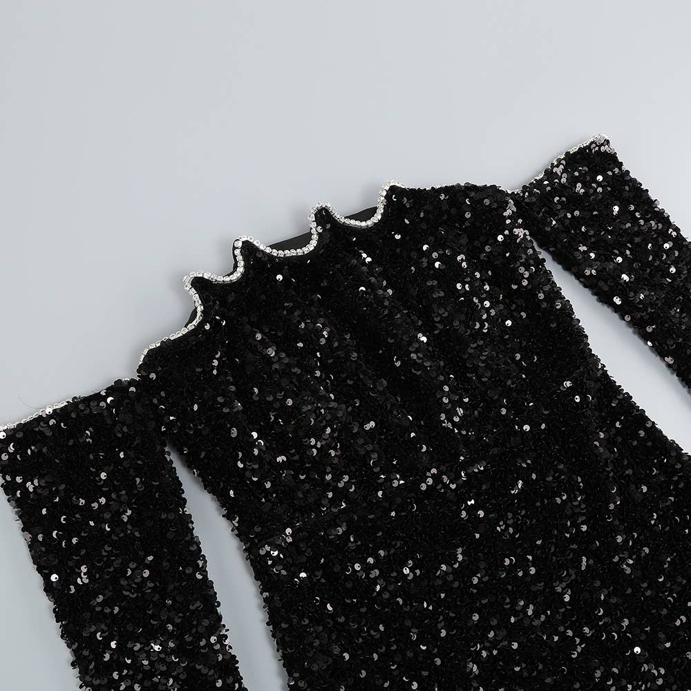 Turn heads in this dazzling one-shoulder party dress, designed to hug your curves and showcase an elegant silhouette. Adorned with shimmering sequins, this slim-fit dress catches the light beautifully, ensuring you shine at every event. The long sleeves add a sophisticated touch, while the hip-wrapped short skirt enhances your figure with a bold, confident statement. Perfect for glamorous occasions, this dress is ideal for cocktail parties, evening gatherings, or special celebrations where you want to make a lasting impression. Designed for style and comfort, it blends a modern cut with luxurious details.