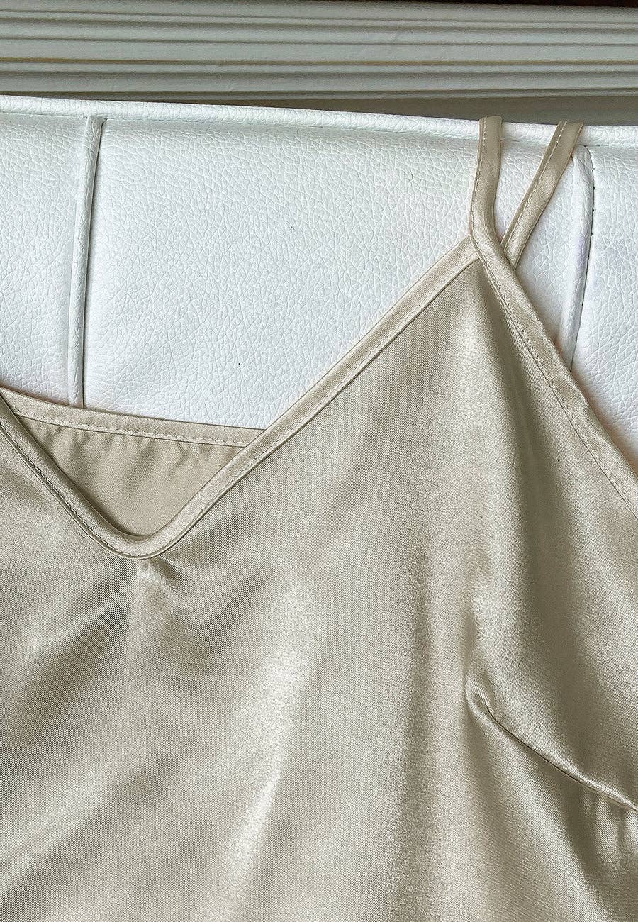Satin Tank and Ruffle Hem Shorts: Ivory